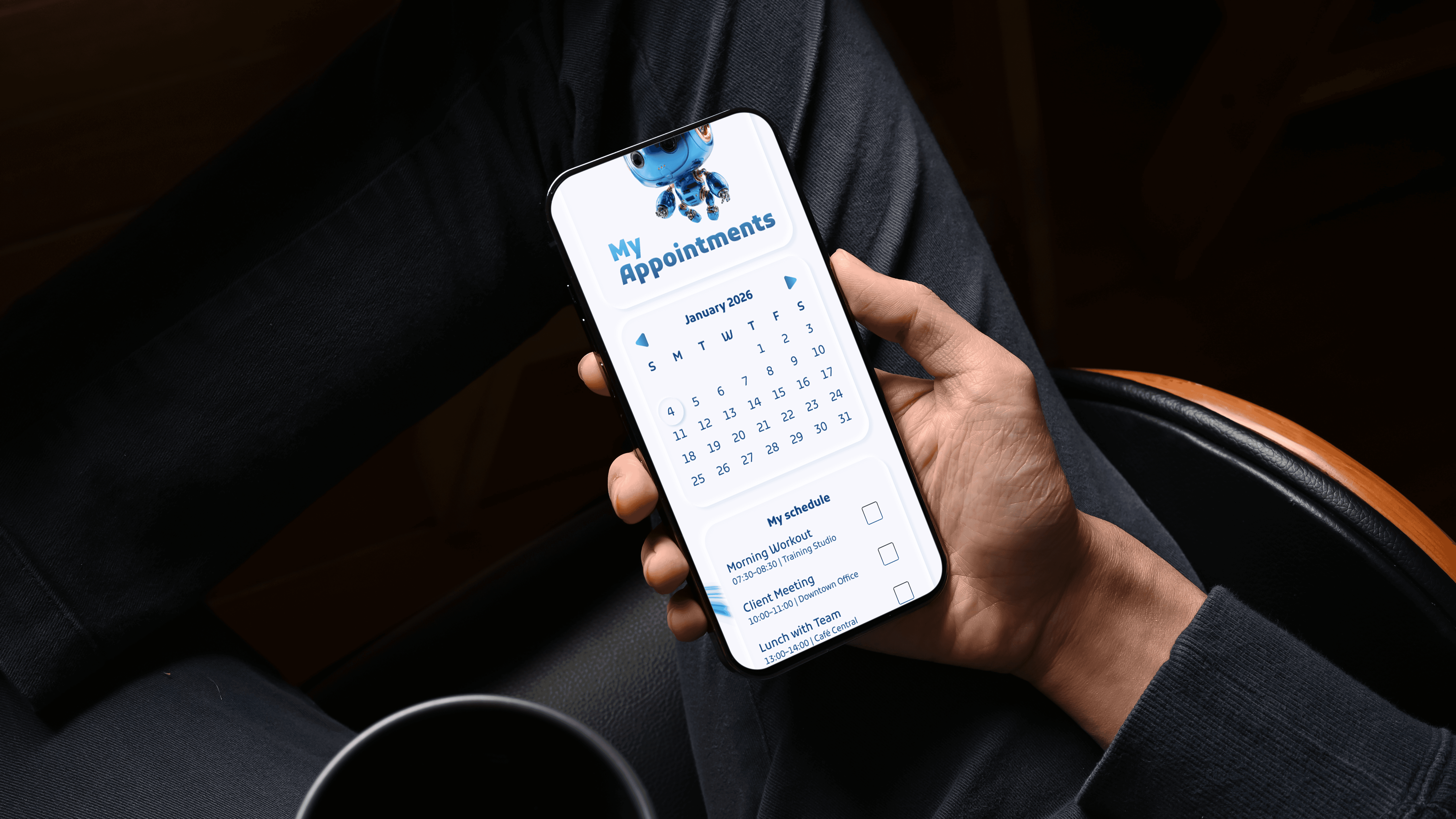 self‑initiated UI concept that combines appointments, reminders and scheduling into a single interface. Working alone, I researched existing tools, sketched wireframes and designed the final product to give users friendly control over their time.