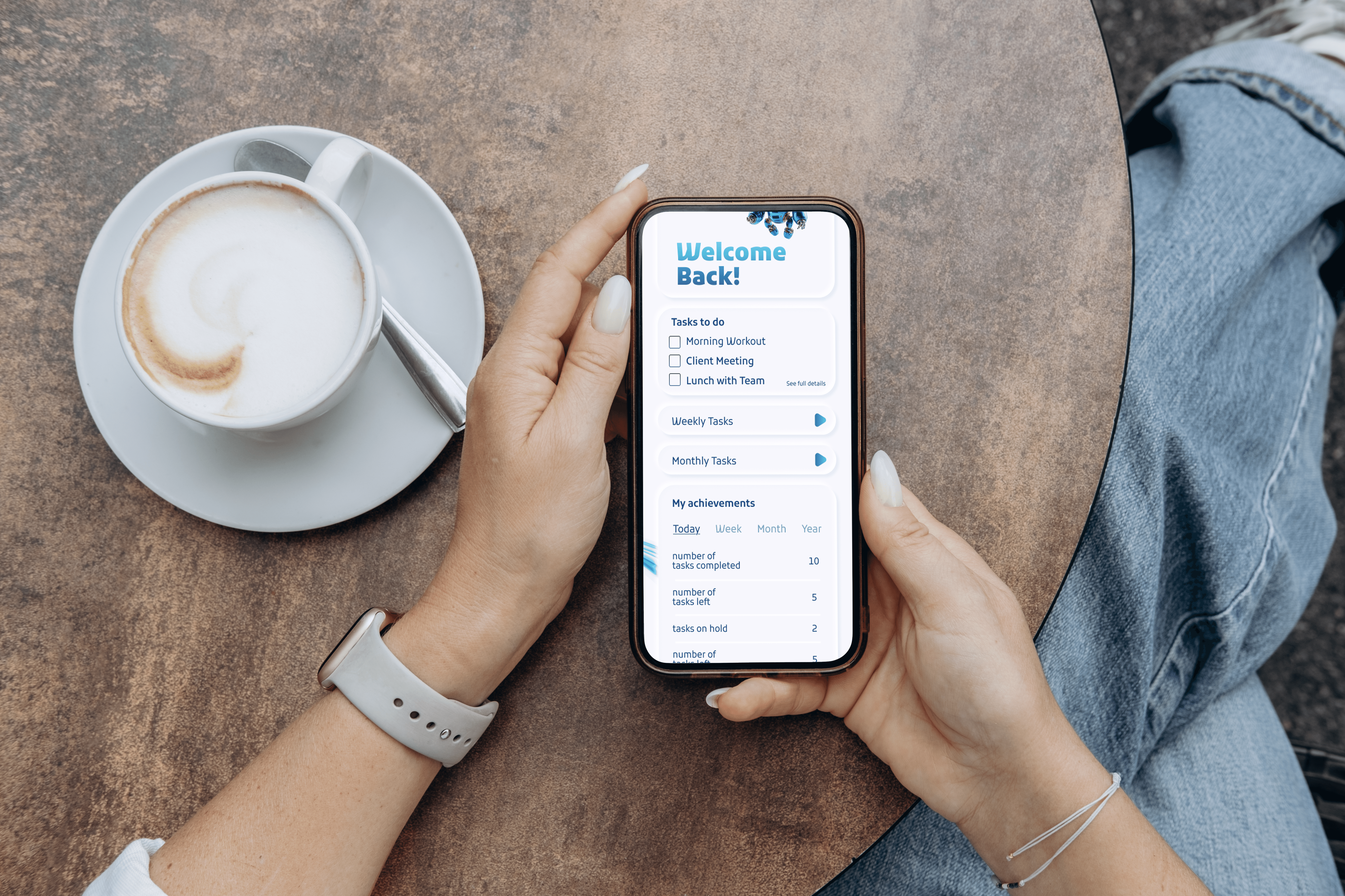 The use of two blue colors as primary colors and whitr as background to create a calm yet engaging interface